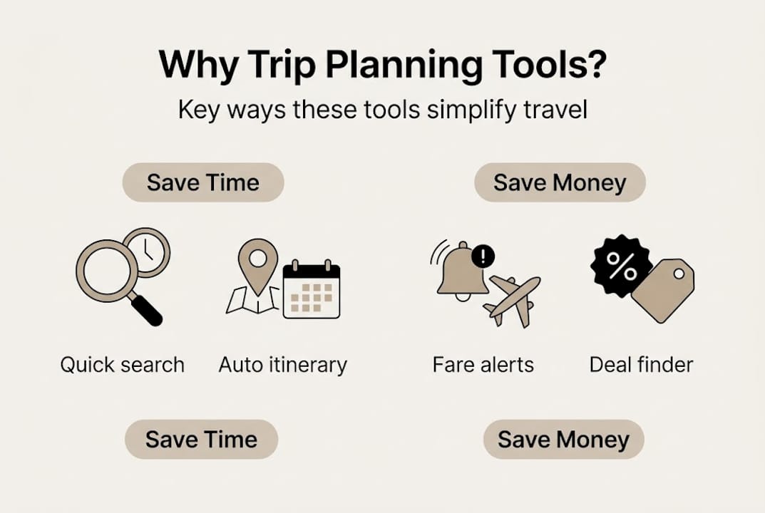Planning a trip should feel exciting, not exhausting. Yet 68% of travelers visit up to 10 different websites just to organize a single vacation, turning what should be a fun process into a frustrating chore. Flights on one tab, hotels on another, activities scattered across a dozen bookmarks. It adds up fast. Trip planning tools exist to cut through that noise, giving you one place to search, compare, book, and manage everything. This guide breaks down exactly why these tools matter, how they save you real time and money, and what features to look for before your next trip.
